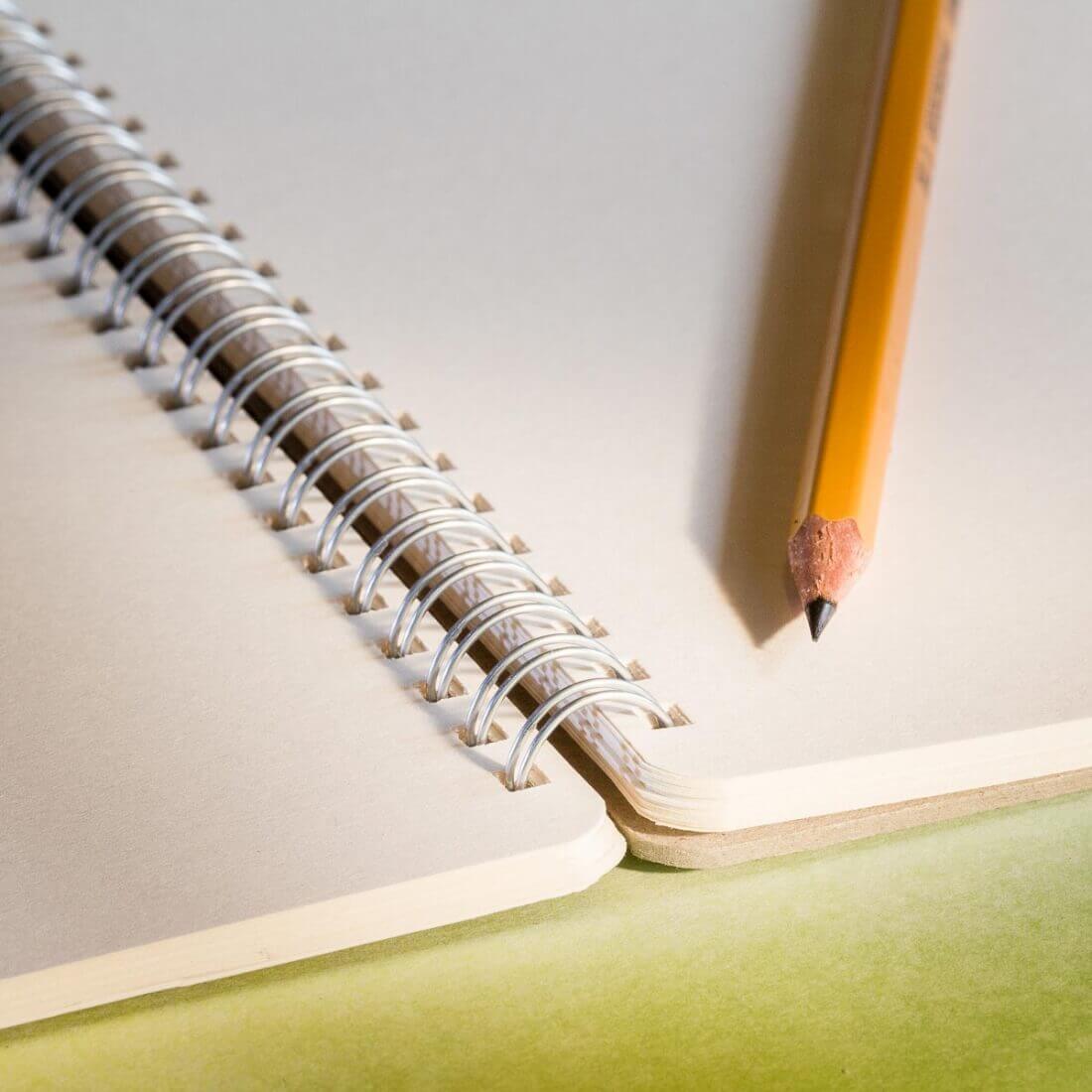 Skicáček velikosti B6 (12,5 x 18 cm) s 50 listy hezkého lehce nažloutlého papíru, po kterém tužka 3B příjemně drandí.