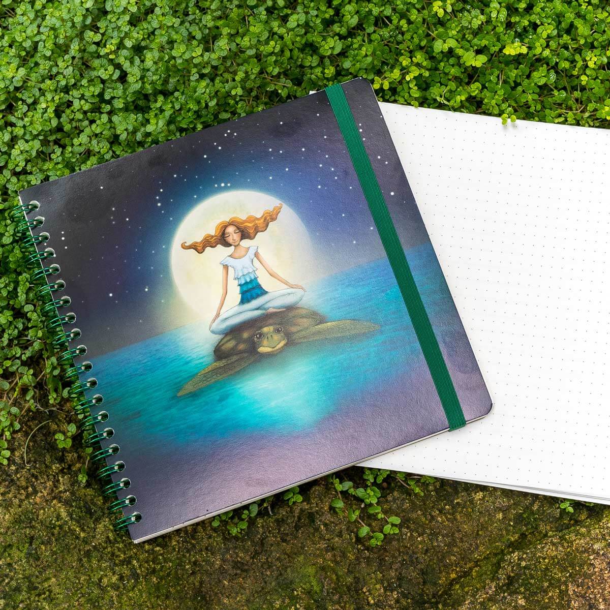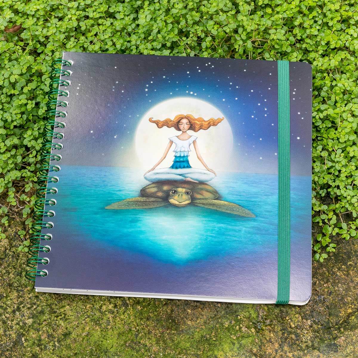 Praktický kroužkový zápisník formátu 18 x 18 cm s autorským obrázkem na obálce.