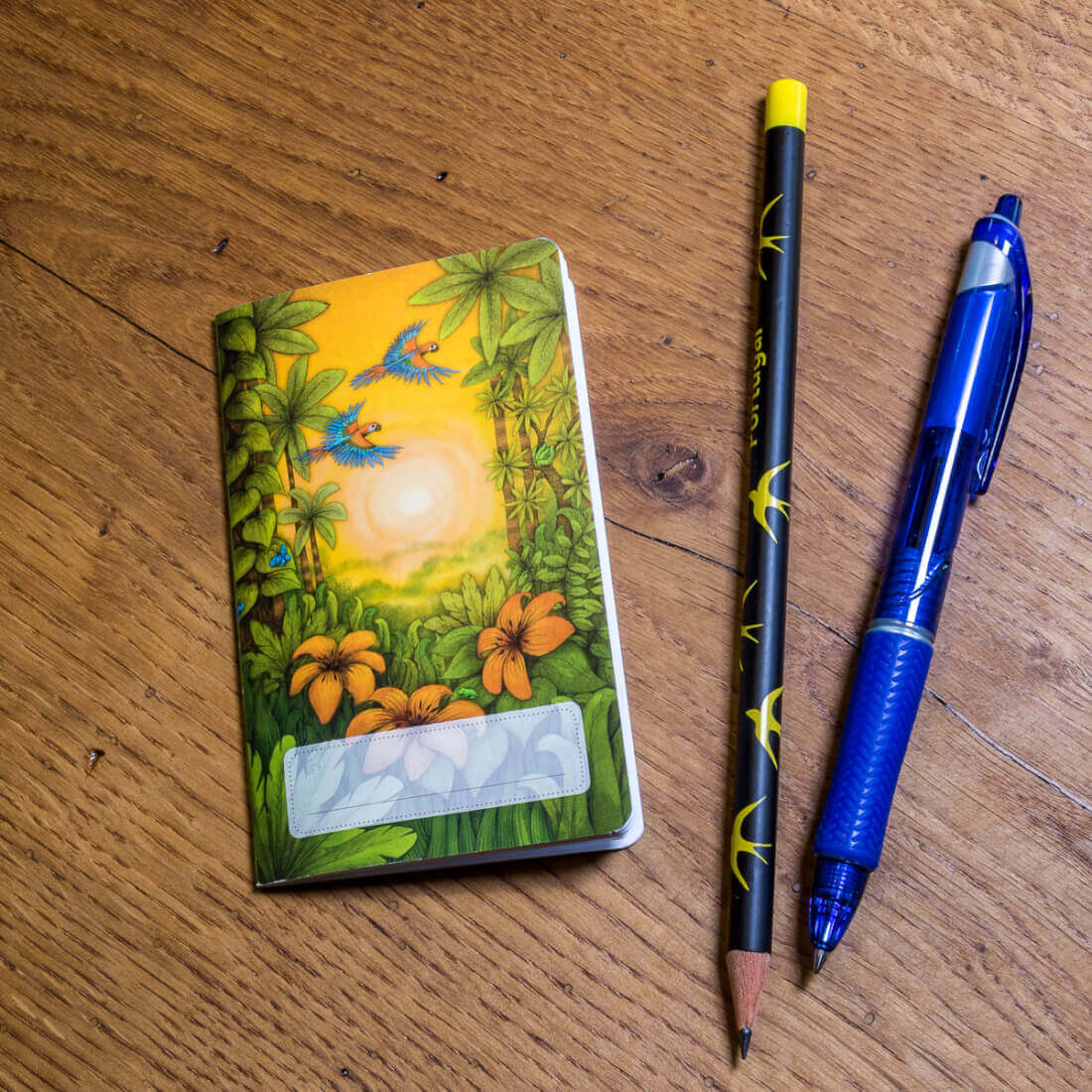 Zápisníček má 18 listů (36 stran) linkovaného papíru, rozteč linek je 6 mm a mají světle šedou barvu. Obálka je z matného, silnějšího (200 g), křídového papíru.