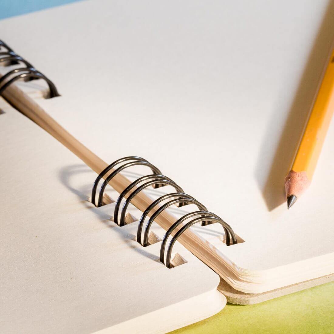 Skicák velikosti B5 s 80 listy hezkého lehce nažloutlého papíru, po kterém tužka 3B příjemně drandí.