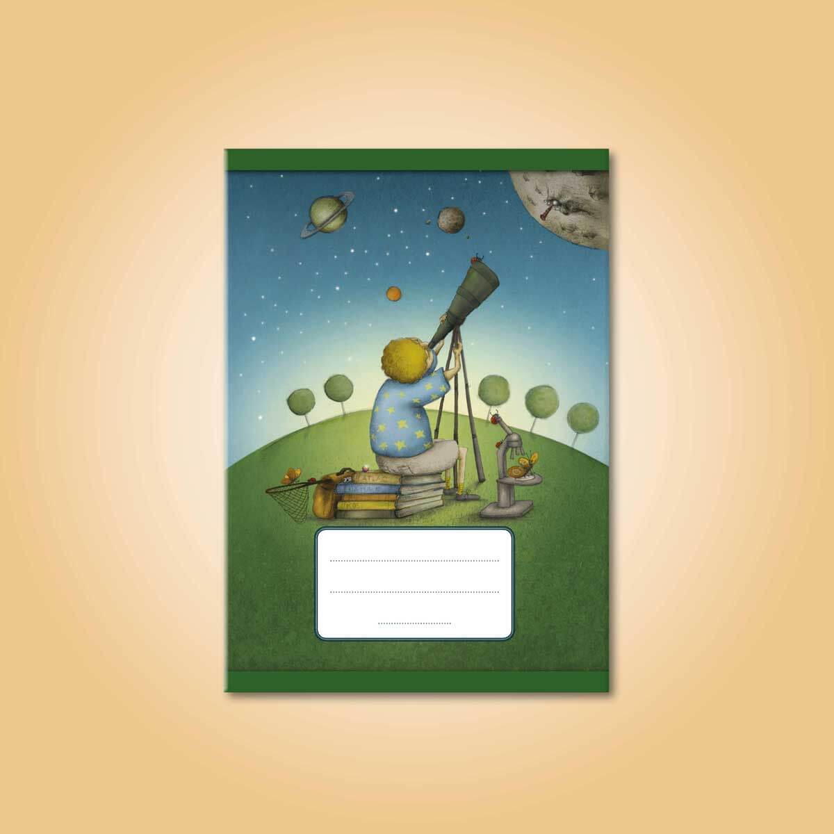 Školní sešit typ 545 s autorskou ilustrací na obálce. Formát A5 (15 x 21 cm). 40 listů, čtverečkovaný