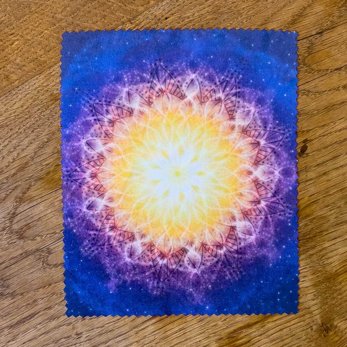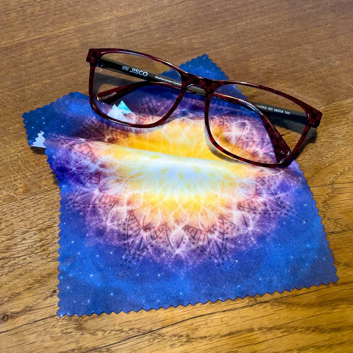 Praktický hadřík na čištění brýlí s autorským motivem.