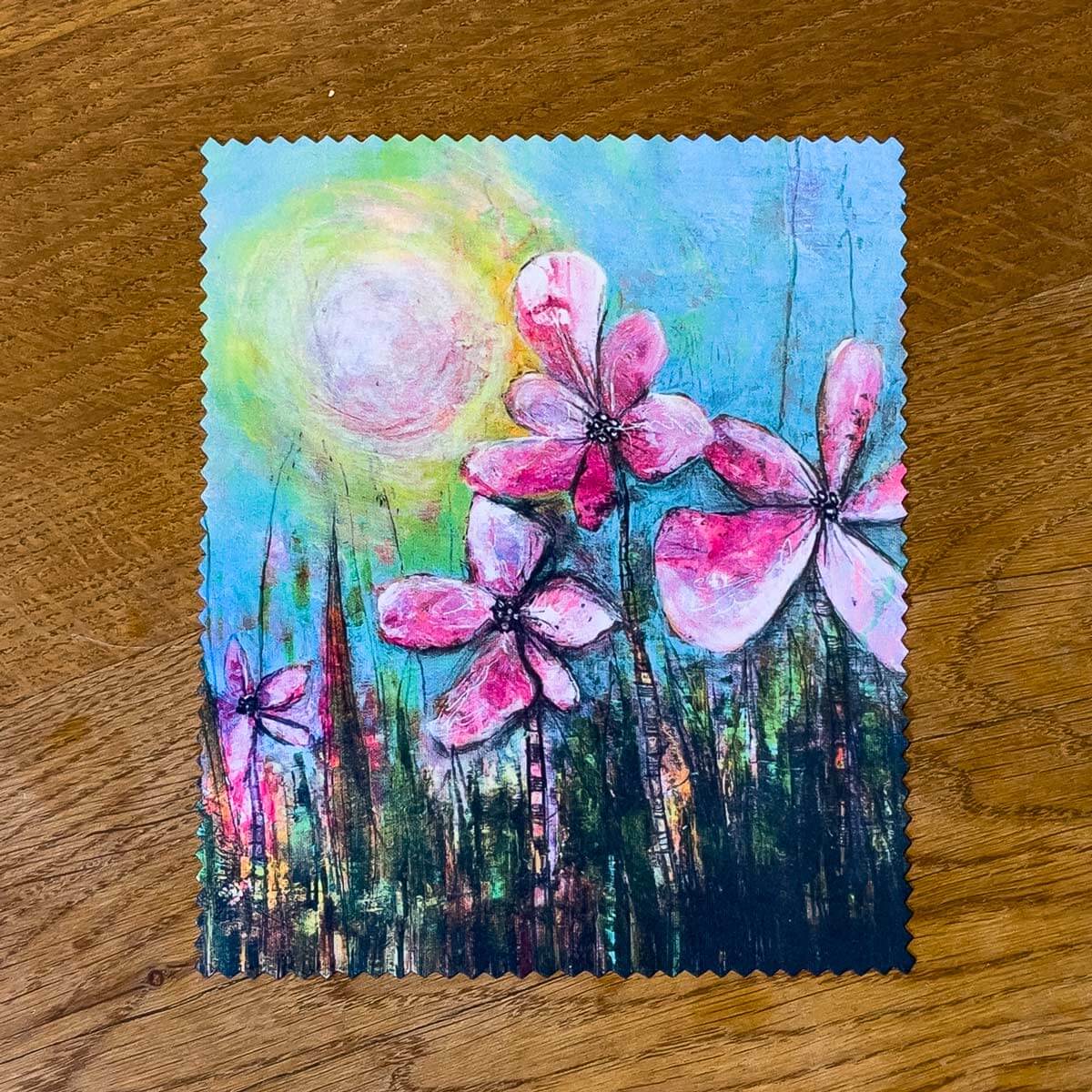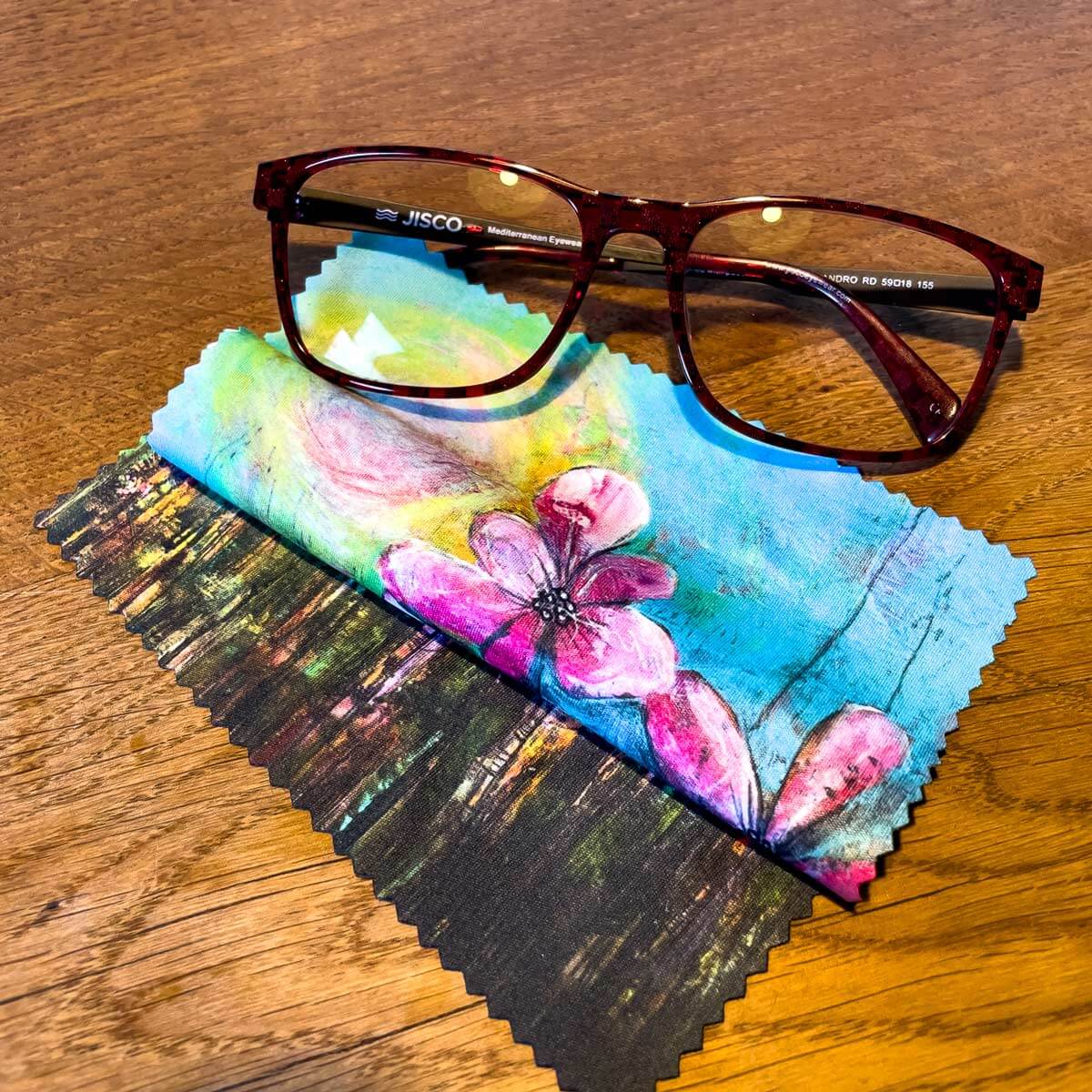 Praktický hadřík na čištění brýlí s autorským motivem.