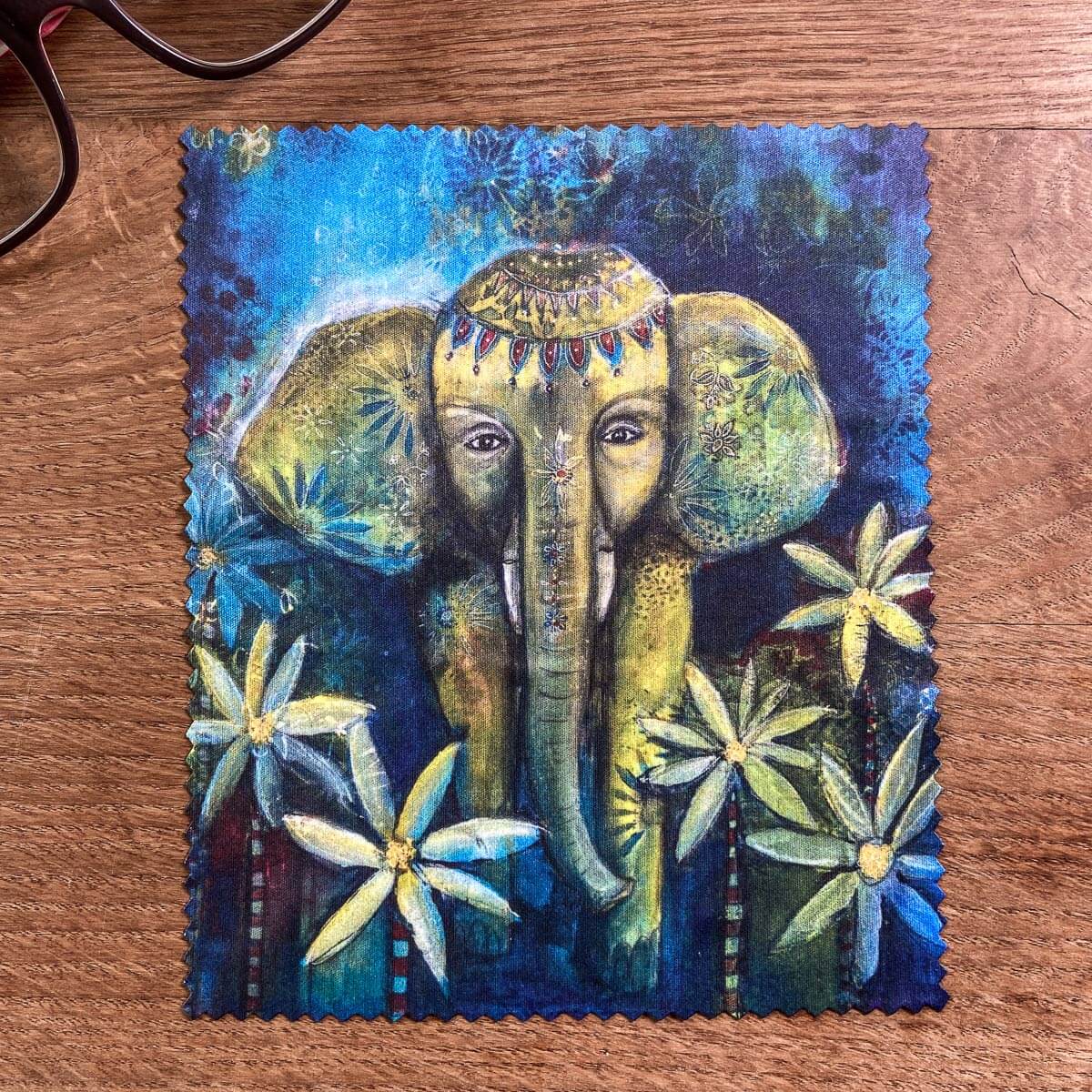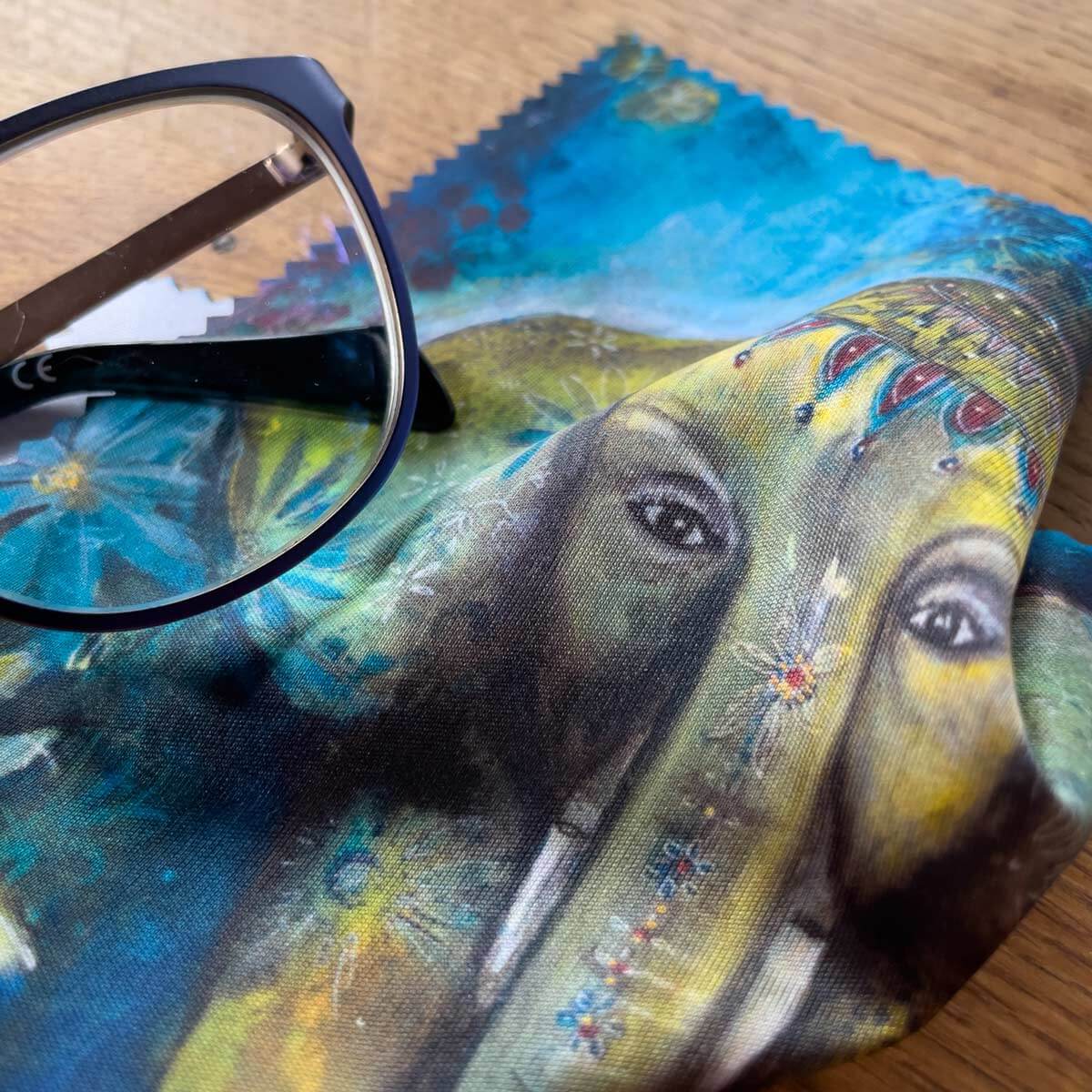 Praktický hadřík na čištění brýlí s autorským motivem.