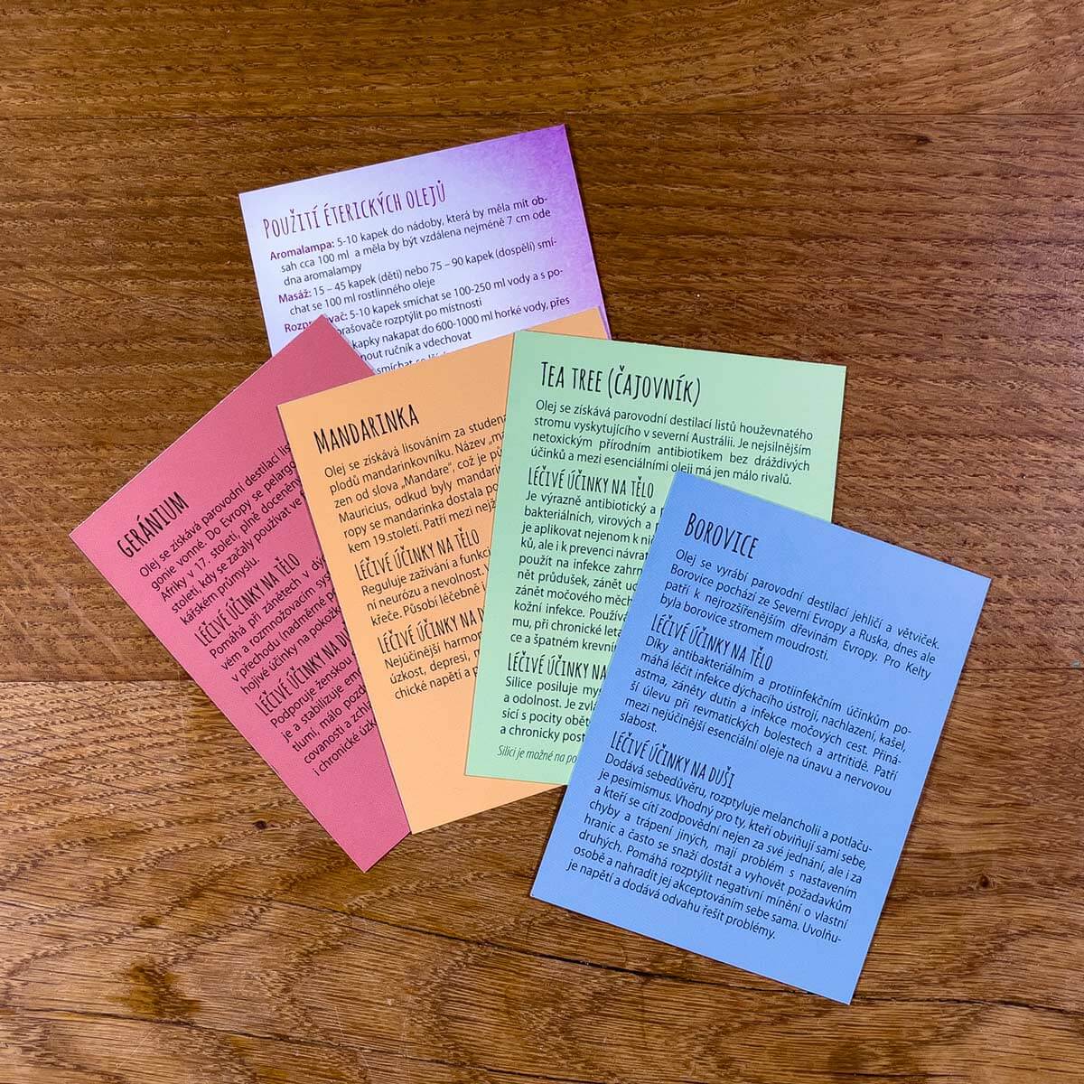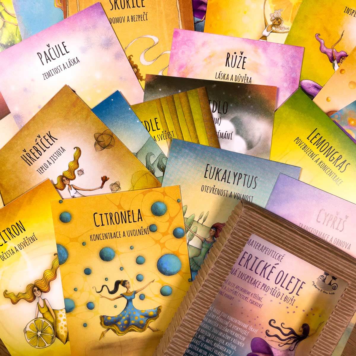 Sada osmadvaceti aromaterapeutických karet s popisem účinků a použití jednotlivých éterických olejů. Na oboustranných kartách se dočtete jak používat éterické oleje a jakým způsobem se vyrábějí.
