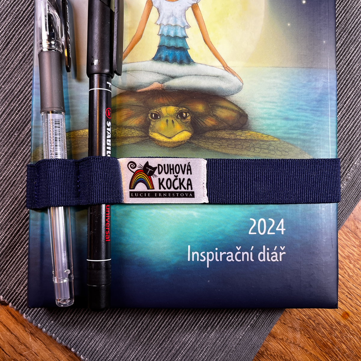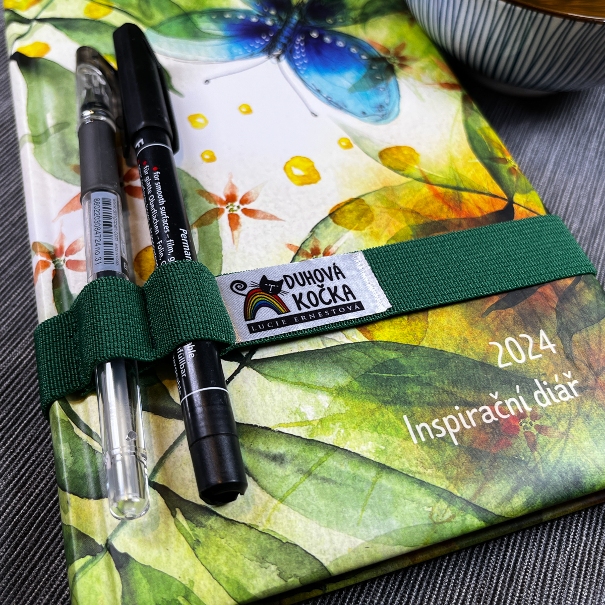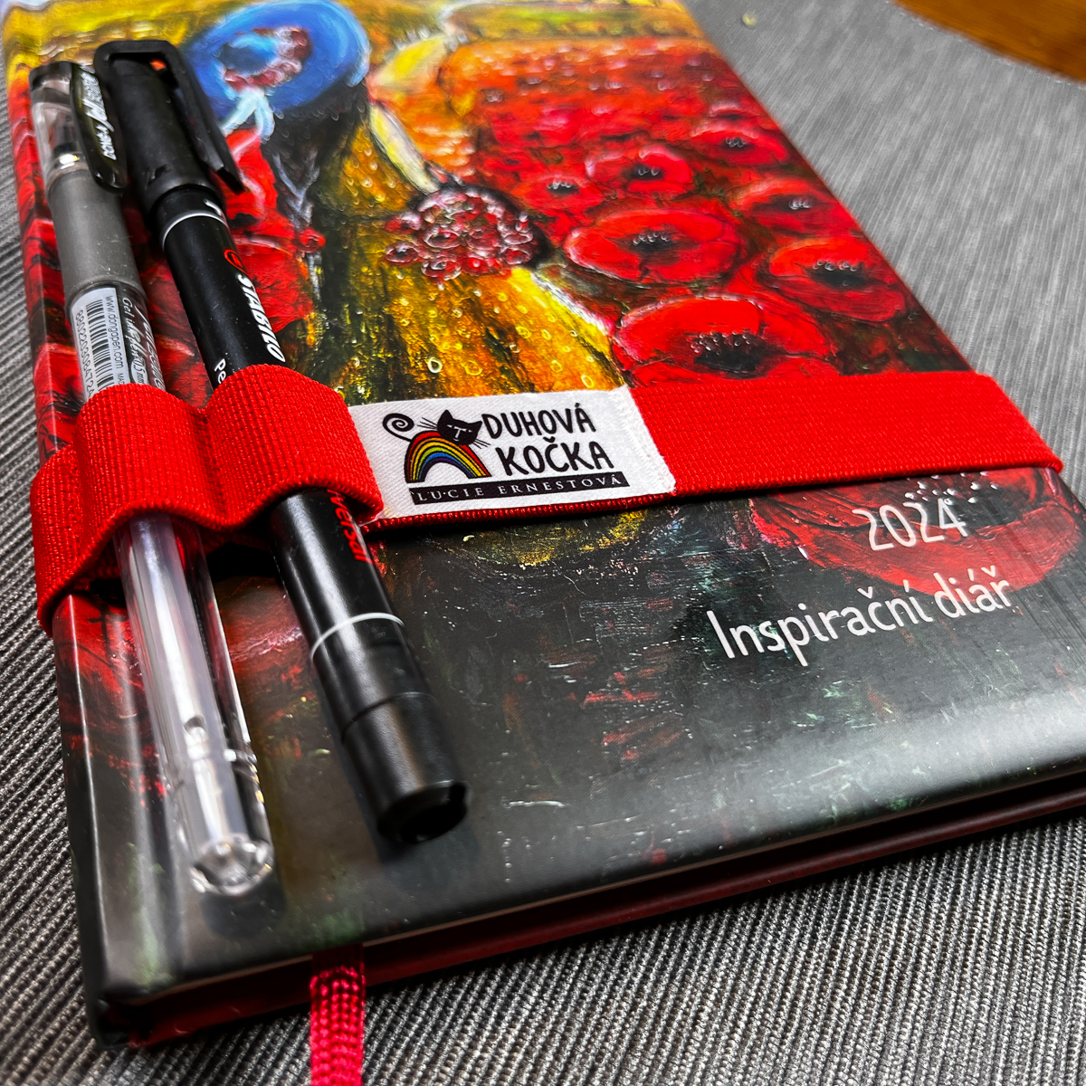 Praktická gumička k našim velkým diářům s poutkem na 2 tužky. Snad už se vám nebudou propisky potulovat po kabelce. Vyberte si barvu, která vám bude ladit s vaším diářem.