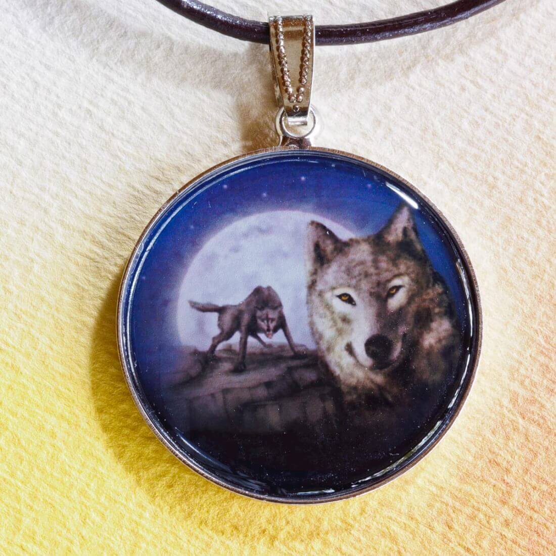 Přívěsek je tvořen kovovým lůžkem průměru 32 mm a čočkou z křišťálové pryskyřice. Čočka s obrázkem má průměr 30 mm. Přívěsek je zavěšený na kožené kulaté šňůrce o průměru 3 mm, s nastavitelnou délkou.