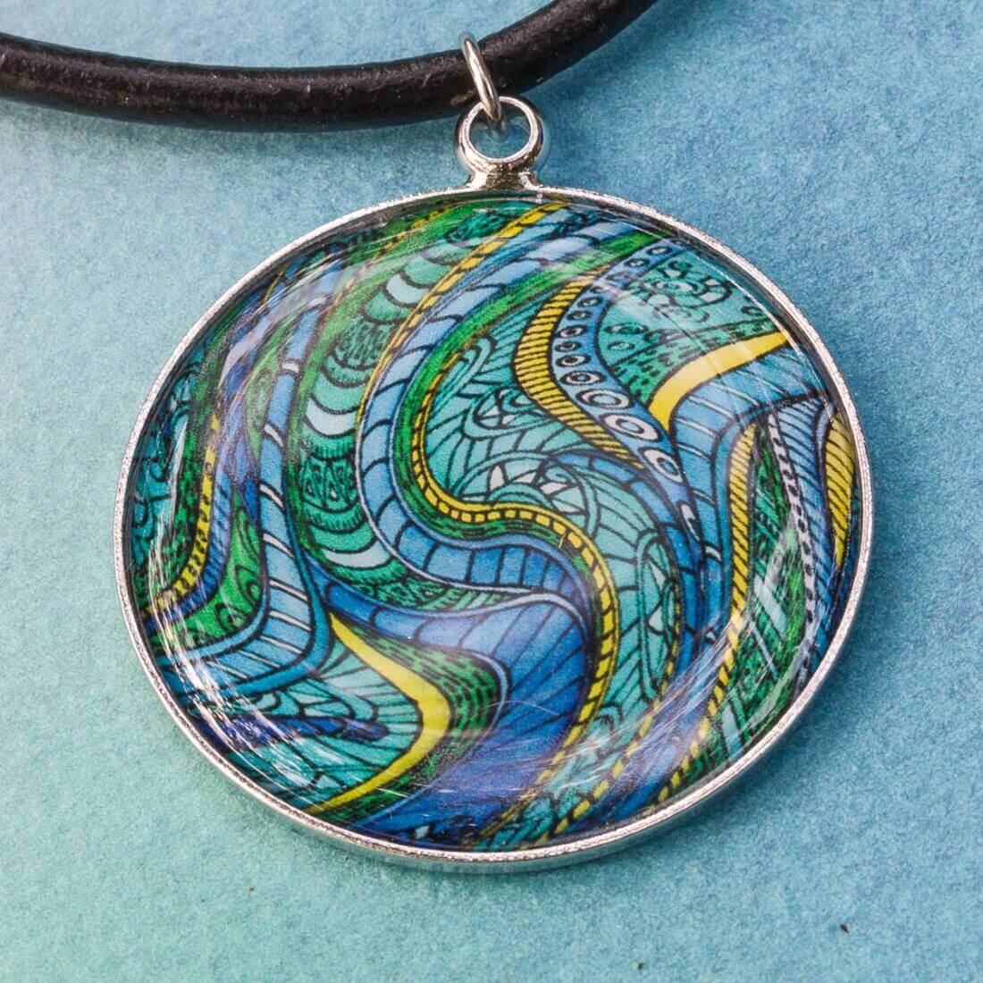 Náhrdelník s psychedelickým motivem.