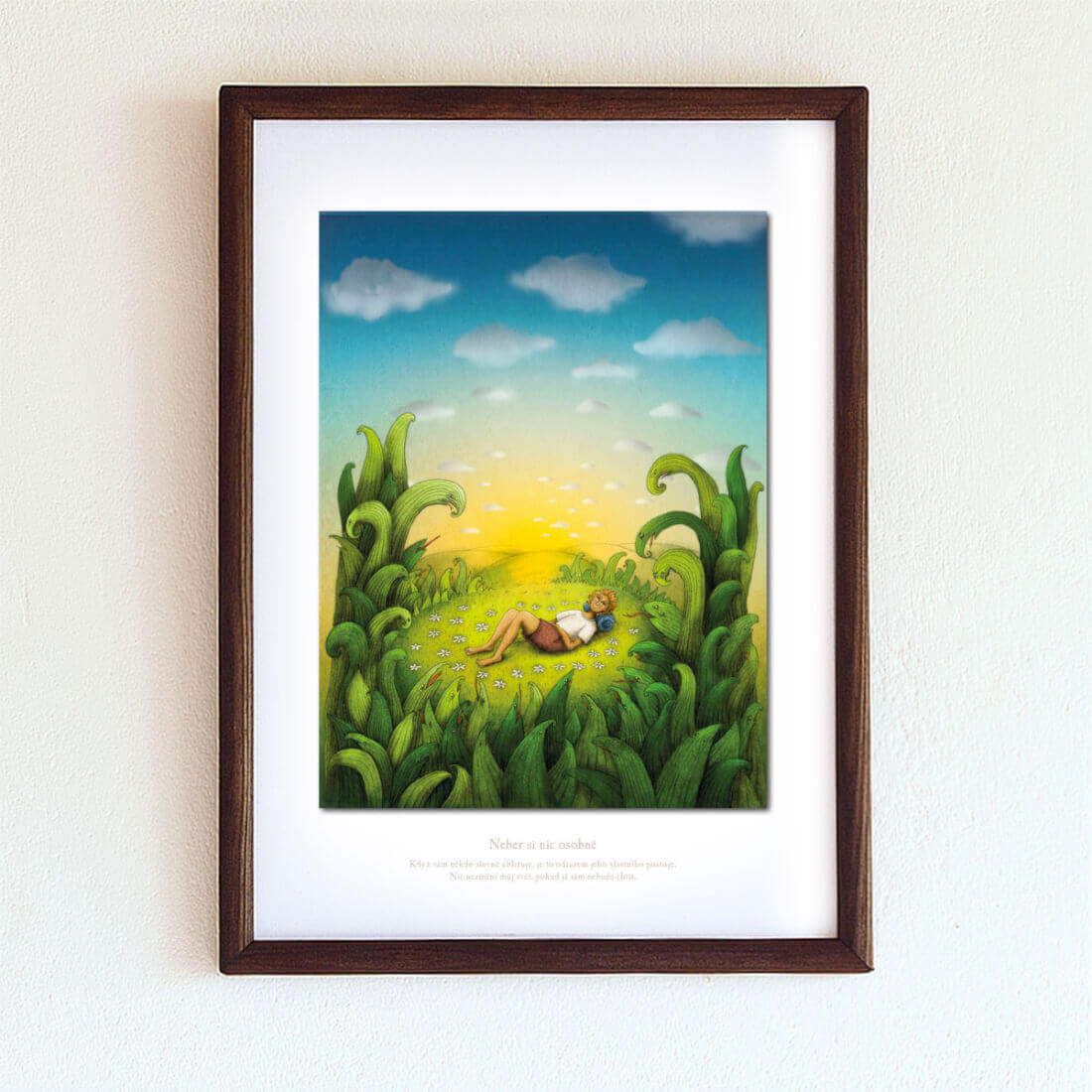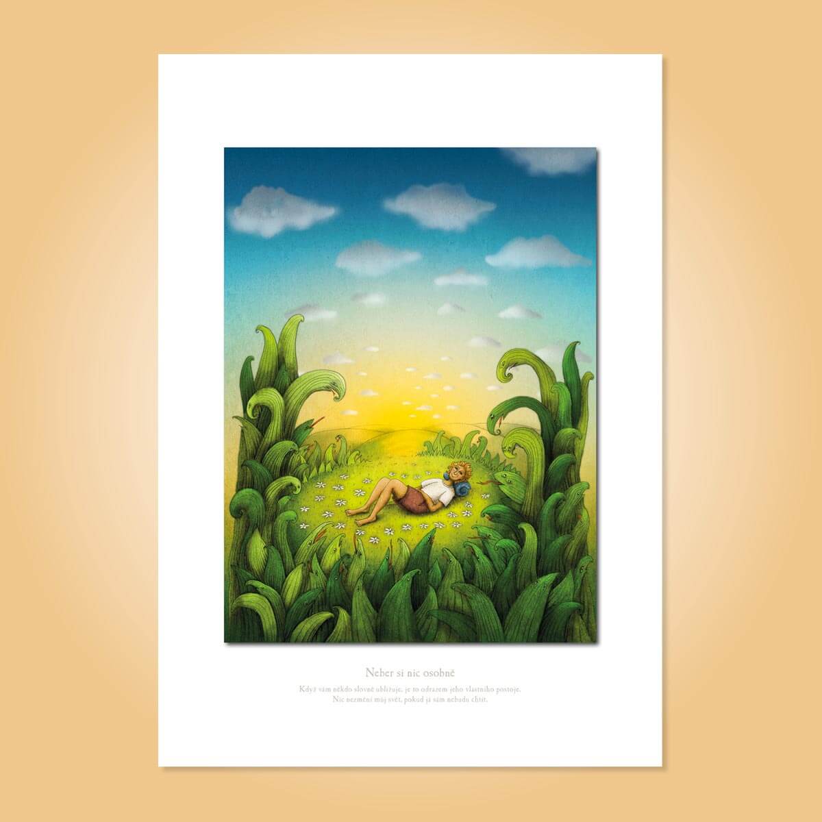 - Obrázek bez rámečku: Samostatná reprodukce s inspiračním textem vytištěným v dolní části bílé pasparty. Dostupné formáty (včetně bílého okraje): A4 (21 x 29,7 cm), A3 (29,7 x 42 cm) a A2 (42 x 59,4 cm)