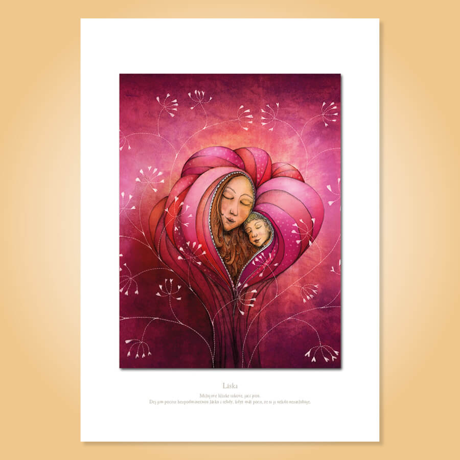 - Obrázek bez rámečku: Samostatná reprodukce s inspiračním textem vytištěným v dolní části bílé pasparty. Dostupné formáty (včetně bílého okraje): A4 (21 x 29,7 cm), A3 (29,7 x 42 cm) a A2 (42 x 59,4 cm)