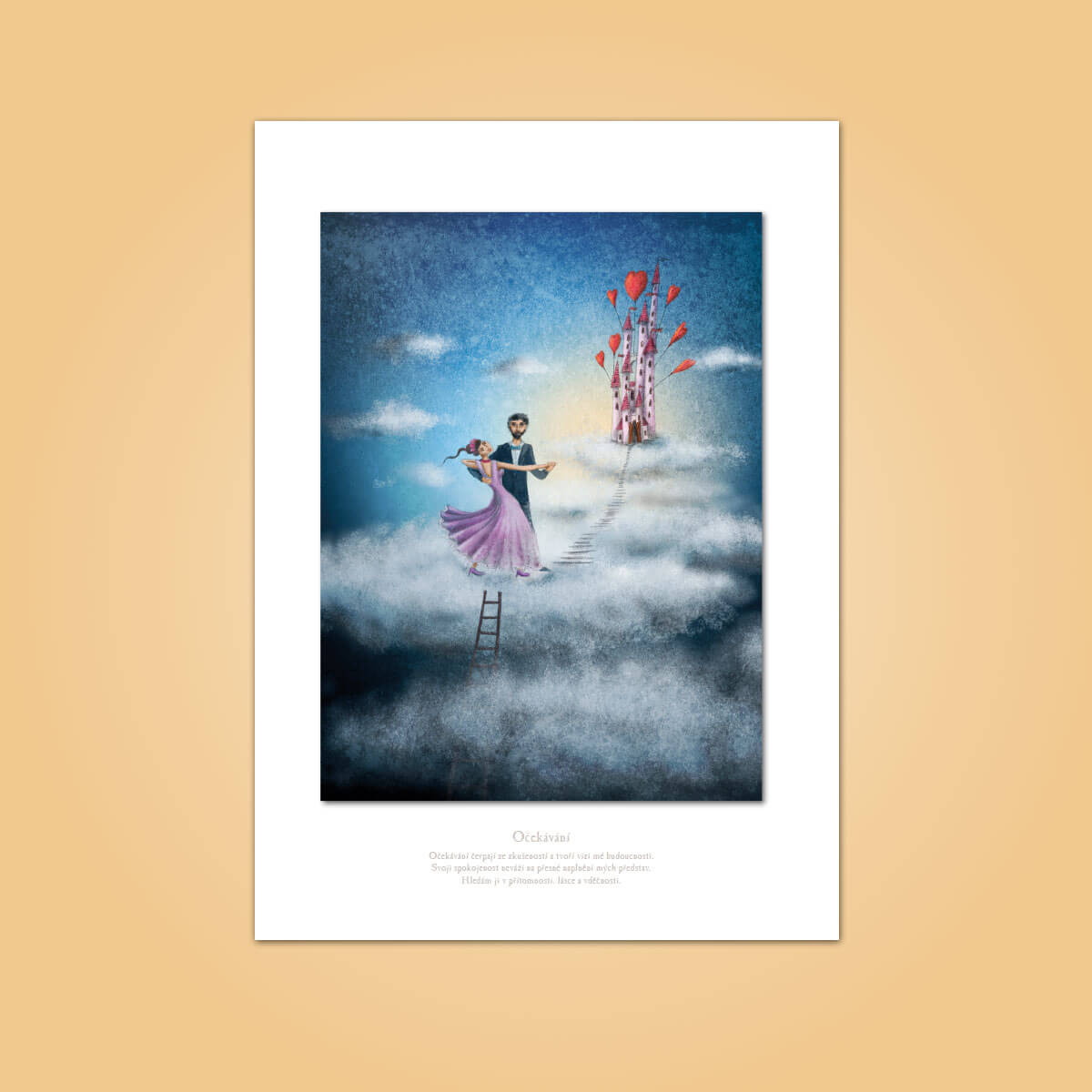 - Obrázek bez rámečku: Samostatná reprodukce s inspiračním textem vytištěným v dolní části bílé pasparty. Dostupné formáty (včetně bílého okraje): A4 (21 x 29,7 cm), A3 (29,7 x 42 cm) a A2 (42 x 59,4 cm)