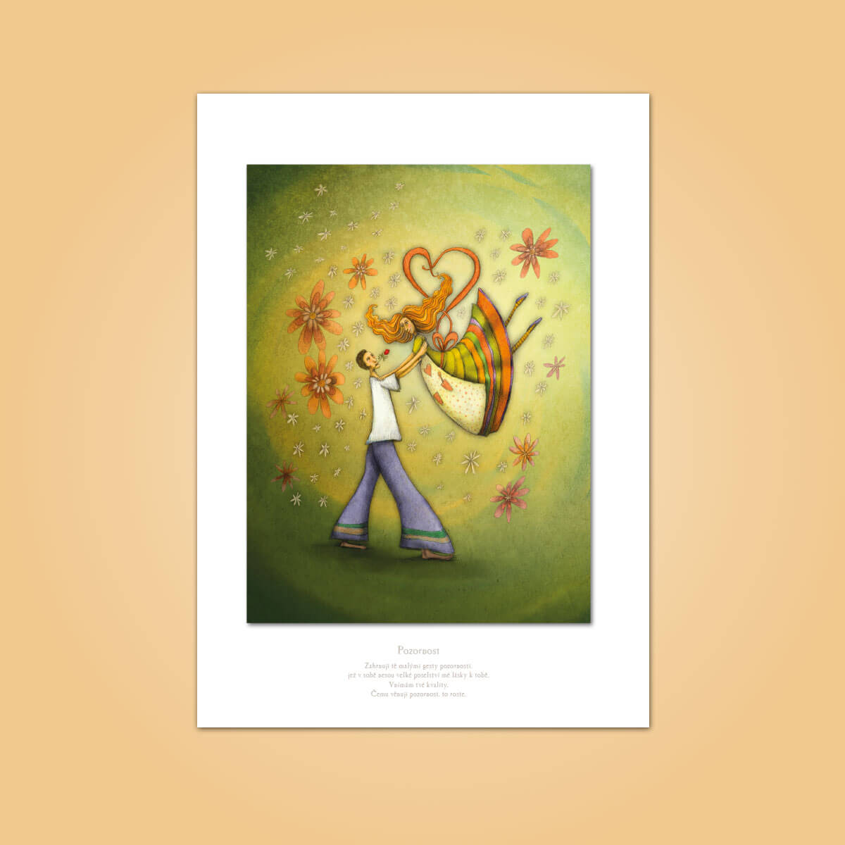 - Obrázek bez rámečku: Samostatná reprodukce s inspiračním textem vytištěným v dolní části bílé pasparty. Dostupné formáty (včetně bílého okraje): A4 (21 x 29,7 cm), A3 (29,7 x 42 cm) a A2 (42 x 59,4 cm)
