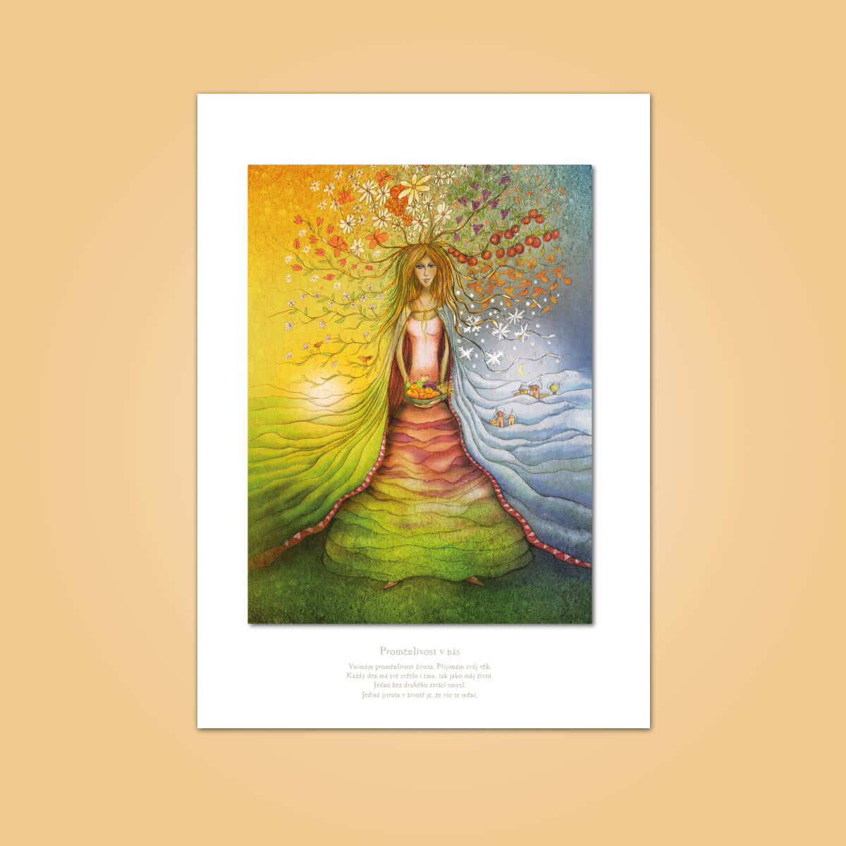 - Obrázek bez rámečku: Samostatná reprodukce s inspiračním textem vytištěným v dolní části bílé pasparty. Dostupné formáty (včetně bílého okraje): A4 (21 x 29,7 cm), A3 (29,7 x 42 cm) a A2 (42 x 59,4 cm)
