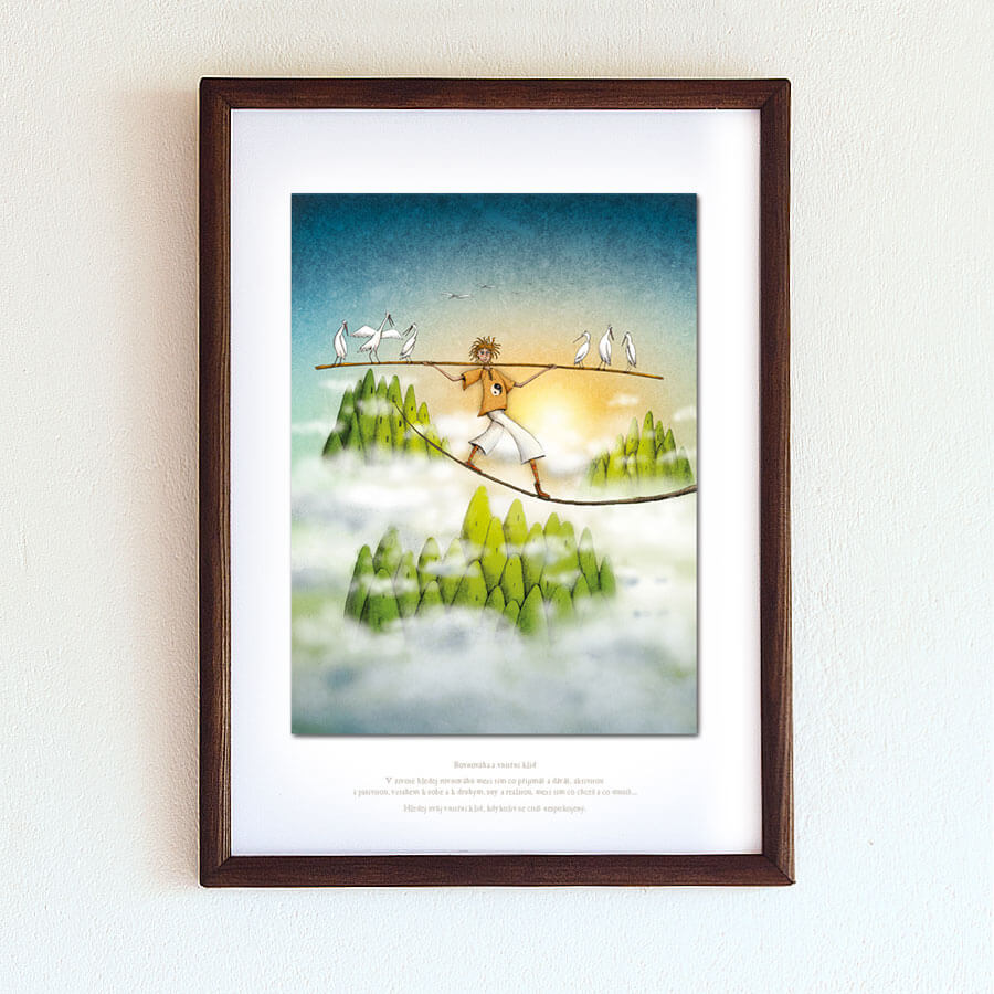 - Obrázek bez rámečku: Samostatná reprodukce s inspiračním textem vytištěným v dolní části bílé pasparty. Dostupné formáty (včetně bílého okraje): A4 (21 x 29,7 cm), A3 (29,7 x 42 cm) a A2 (42 x 59,4 cm)