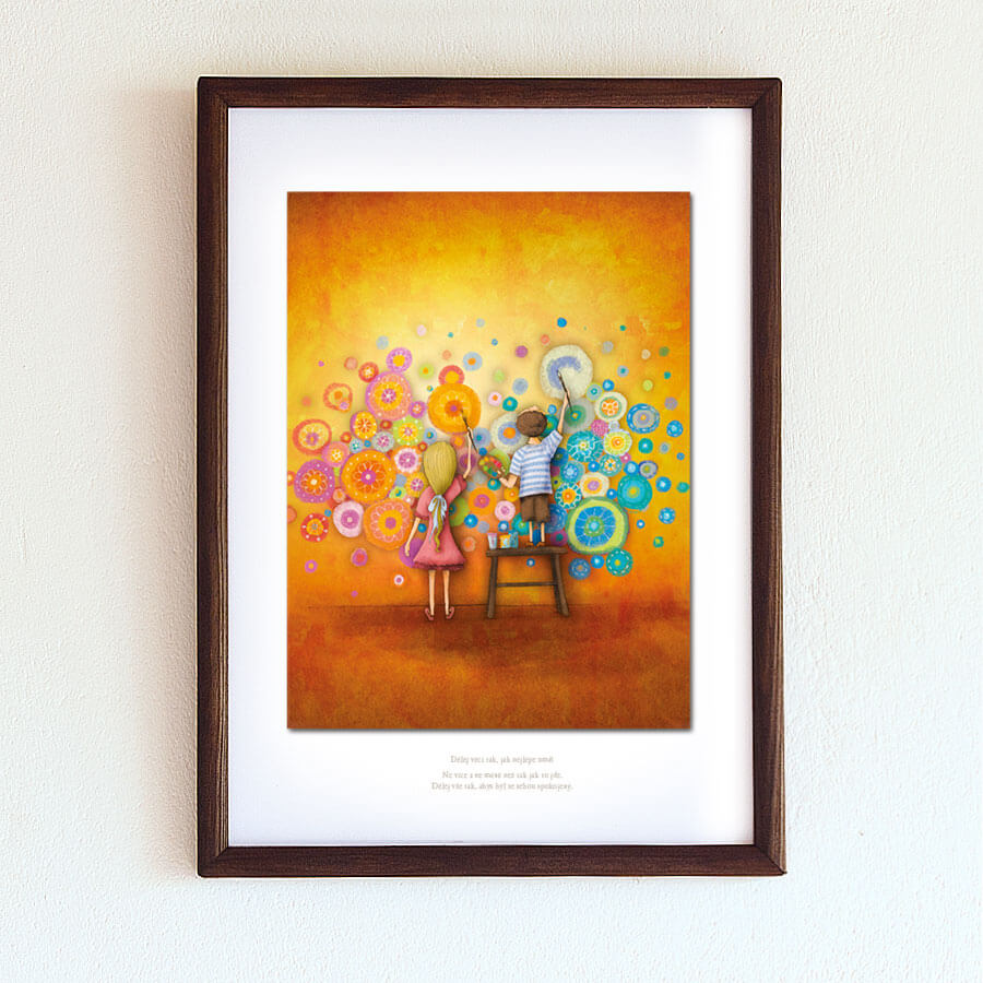 - Obrázek bez rámečku: Samostatná reprodukce s inspiračním textem vytištěným v dolní části bílé pasparty. Dostupné formáty (včetně bílého okraje): A4 (21 x 29,7 cm), A3 (29,7 x 42 cm) a A2 (42 x 59,4 cm)