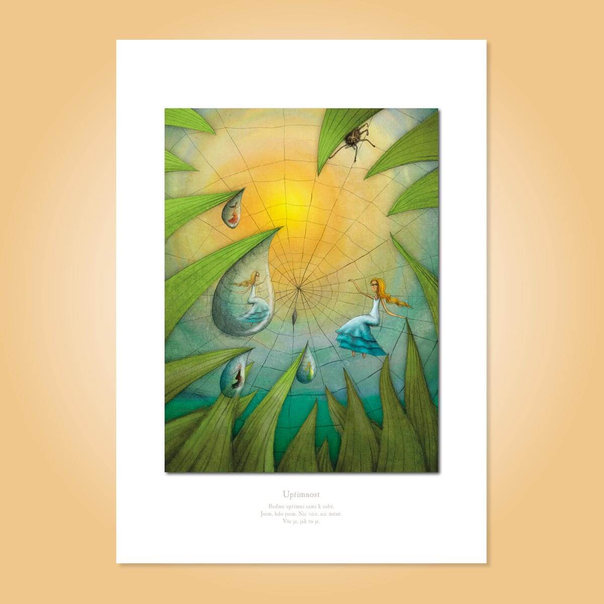 - Obrázek bez rámečku: Samostatná reprodukce s inspiračním textem vytištěným v dolní části bílé pasparty. Dostupné formáty (včetně bílého okraje): A4 (21 x 29,7 cm), A3 (29,7 x 42 cm) a A2 (42 x 59,4 cm)