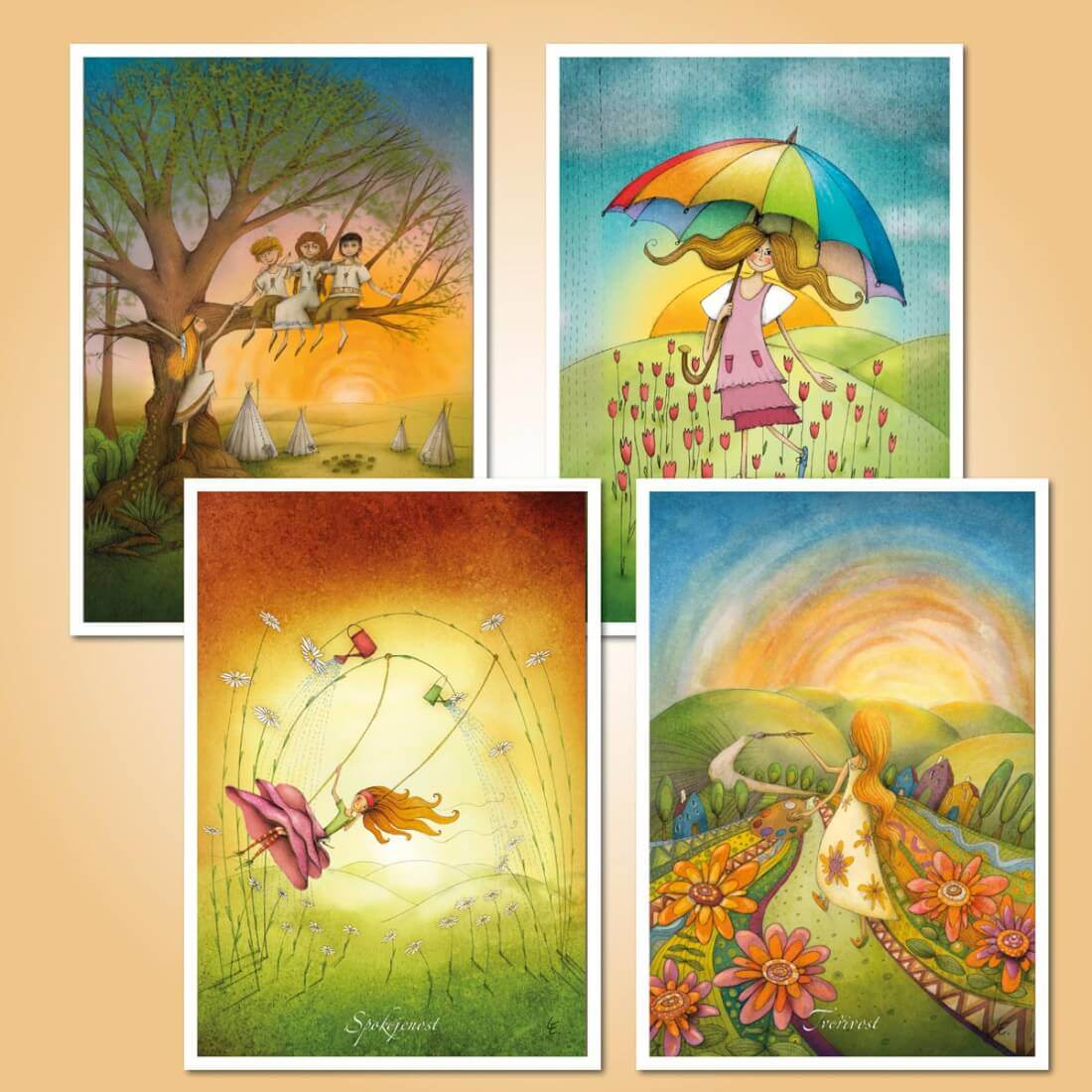Pohlednice vytvořené z vybraných ilustrací k mým projektům inspiračních karet Cesta k sobě a Cesta životem.