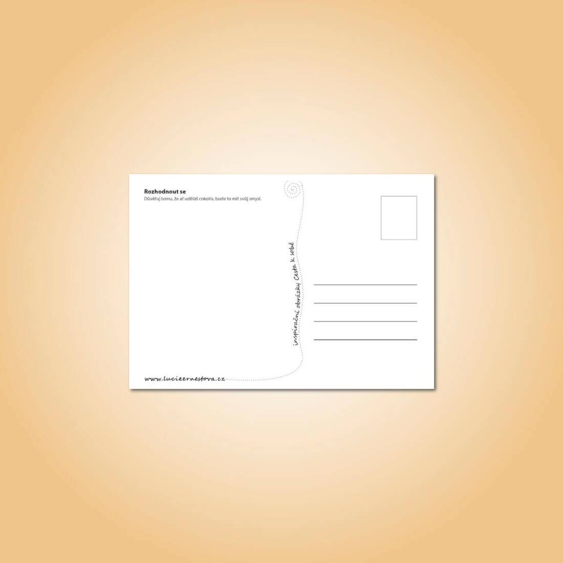 Formát 11,4 x 16,3 cm, křídový papír 350 g. Zezadu je inspirační text a pohlednicové linky.