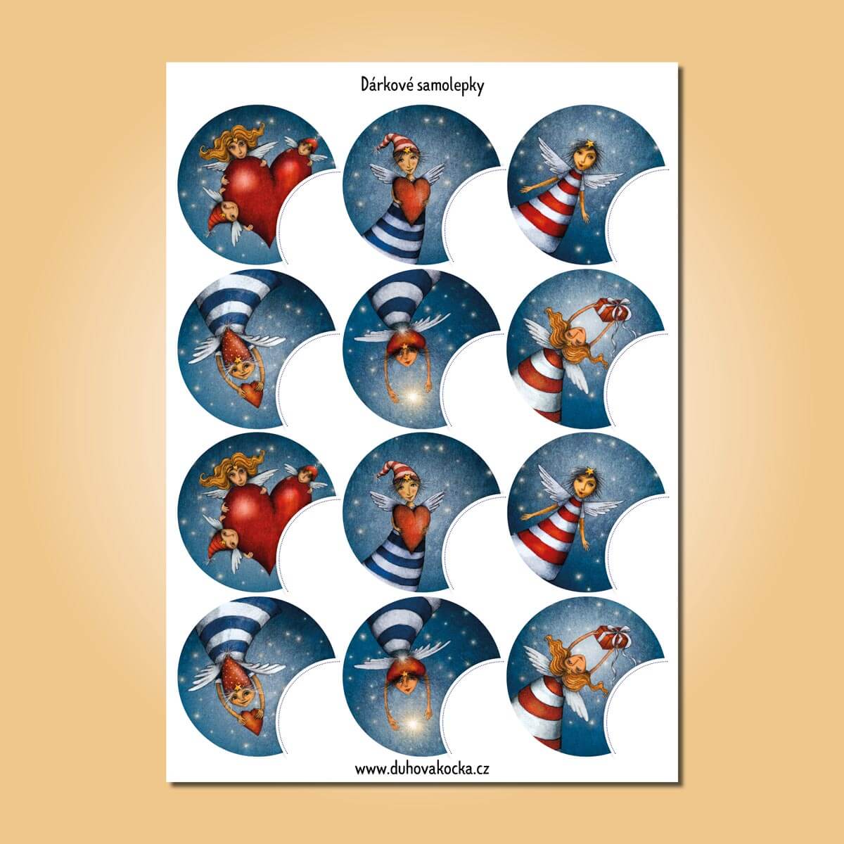 Samolepky s motivy veselých andílků a místem pro vepsání jména na vaše dárky.