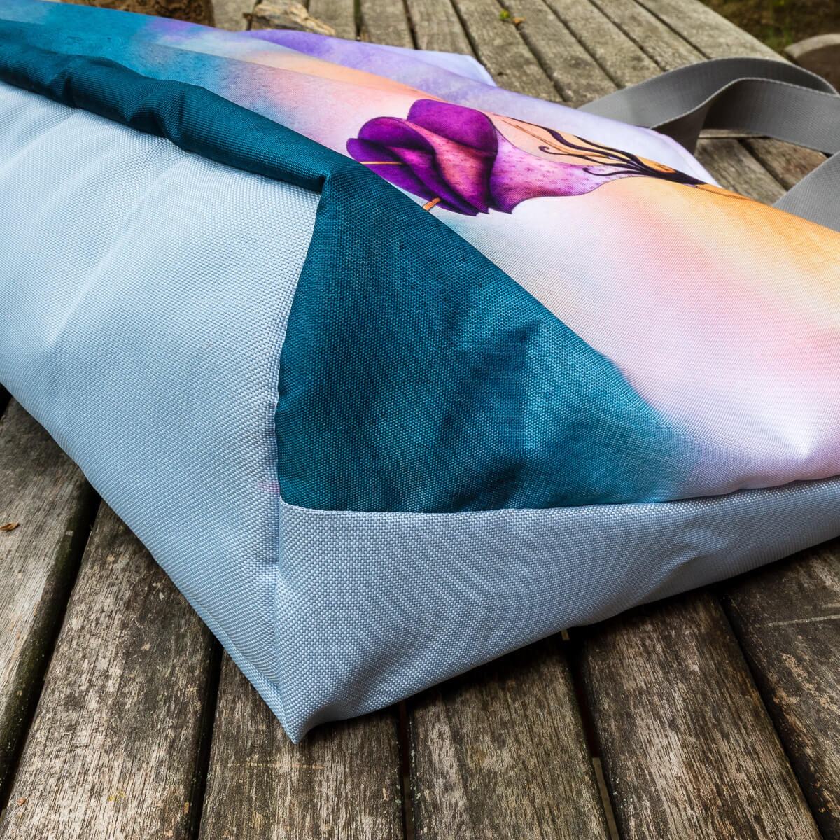 Krásná, prostorná, propracovaná a elegantní taška pro ty, co chtějí mít prostor i ve vlastní kabelce. Dobře poslouží ženám, které potřebují, aby se jim do kabelky vešly hračky na hřiště, mikinky a pitíčka pro děti i nákup. Taška má vyztužené dno vatelínem. Uvnitř má podšívku s kapsičkou se zipem na klíče, peněženku a jiné drobností.