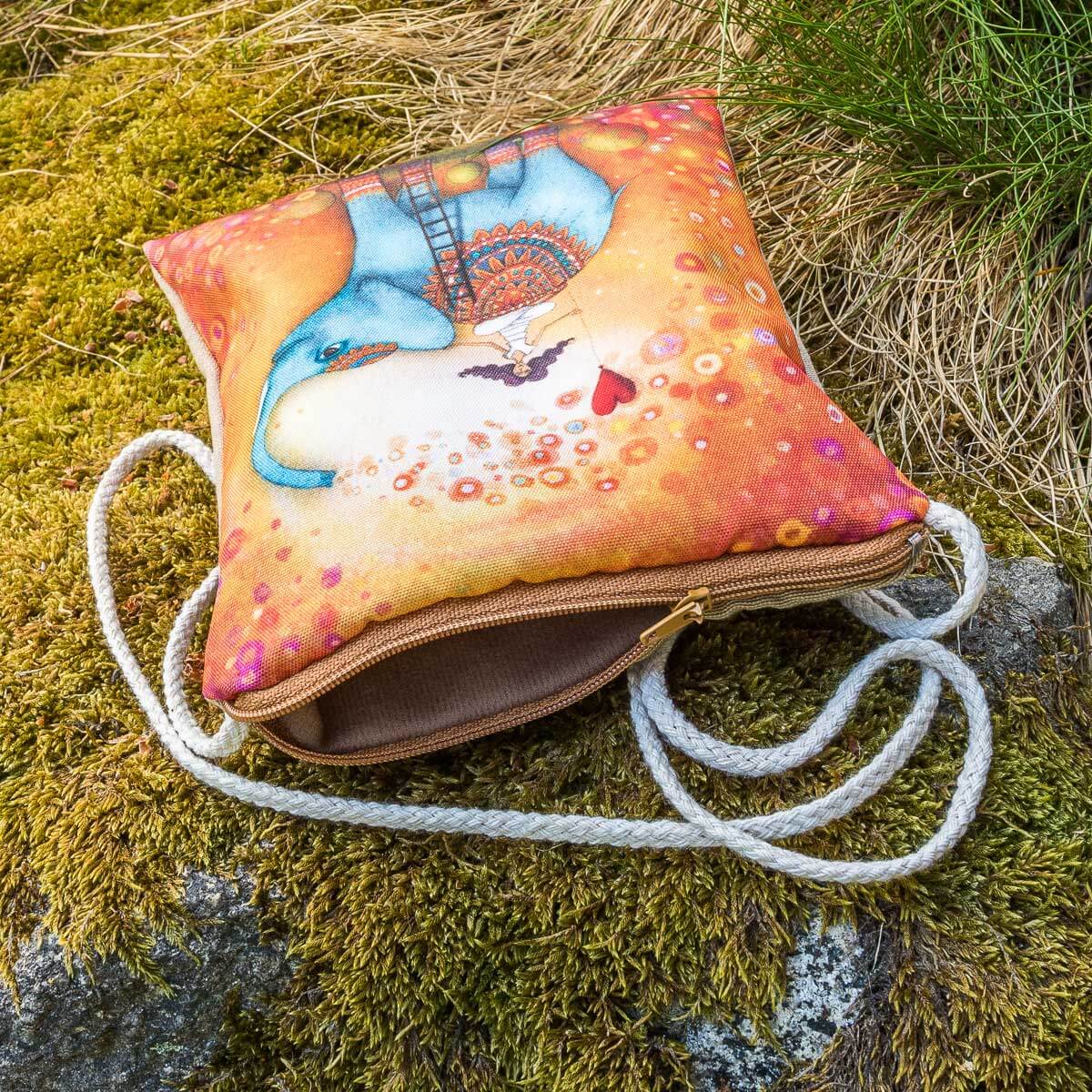 Mini kabelka pro malé i velké s originální ilustrací o rozměru 17 x 18 cm. Zadní díl je ušitý z bavlny, vnitřek je z mikroplyše, zapínání na zip.