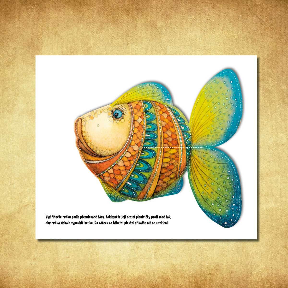 Milá, jednoduchá vystřihovánka rybky, kterou můžete použít jako ozdobu na stromeček nebo třeba na lustr atd.