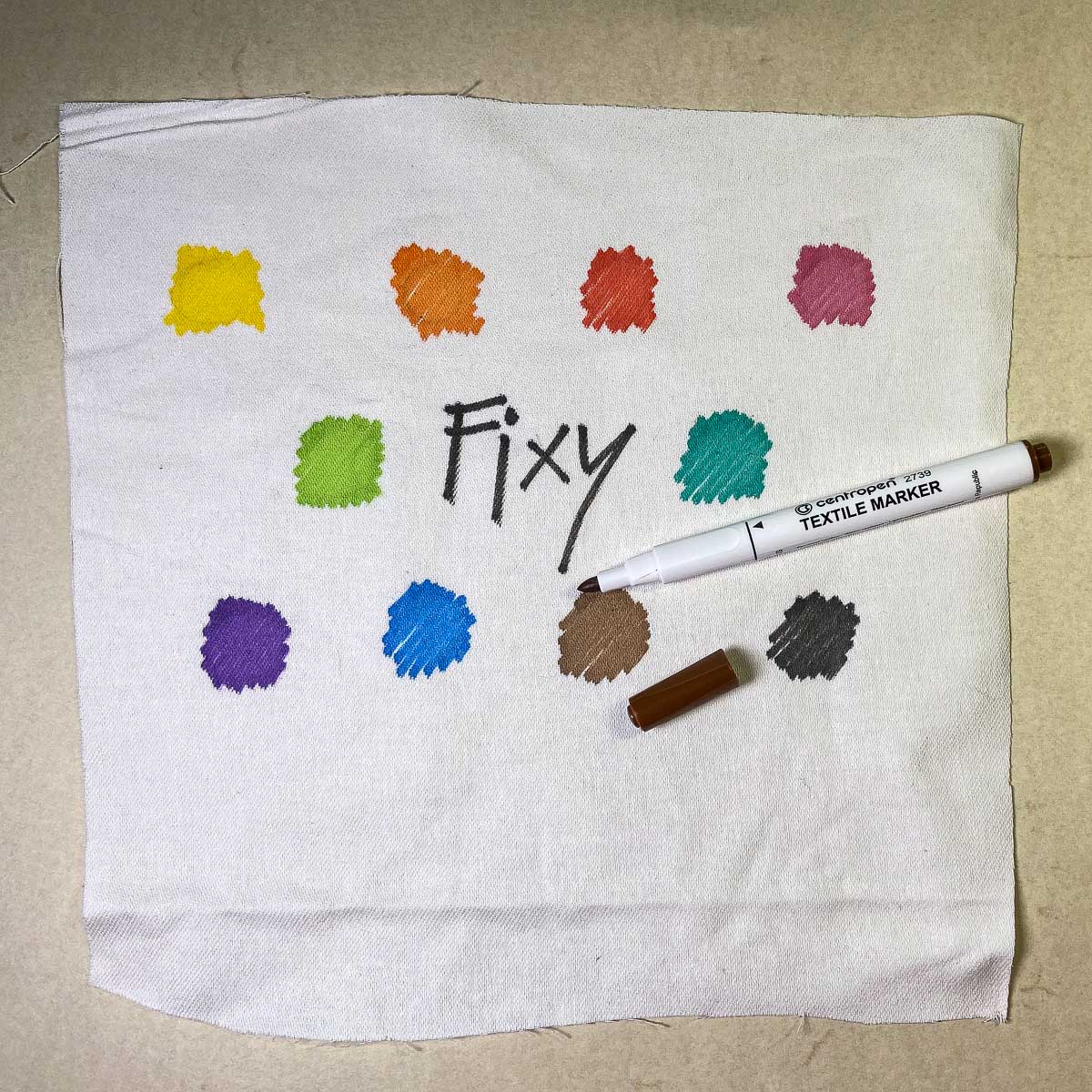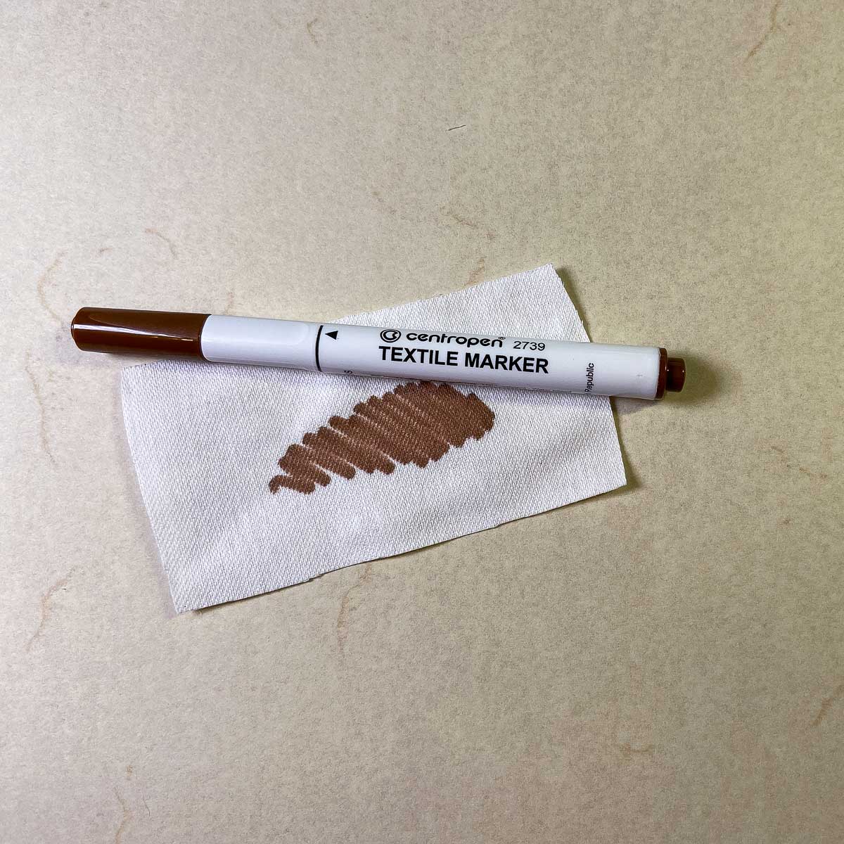 Hnědý fix na textil od značky Centropen. Nemusí se zažehlovat a má odolnost při praní do 60°C. Má hrot o průměru 3,9 mm, ale s jeho špičkou zvládnete i čáry mnohem tenčí.
