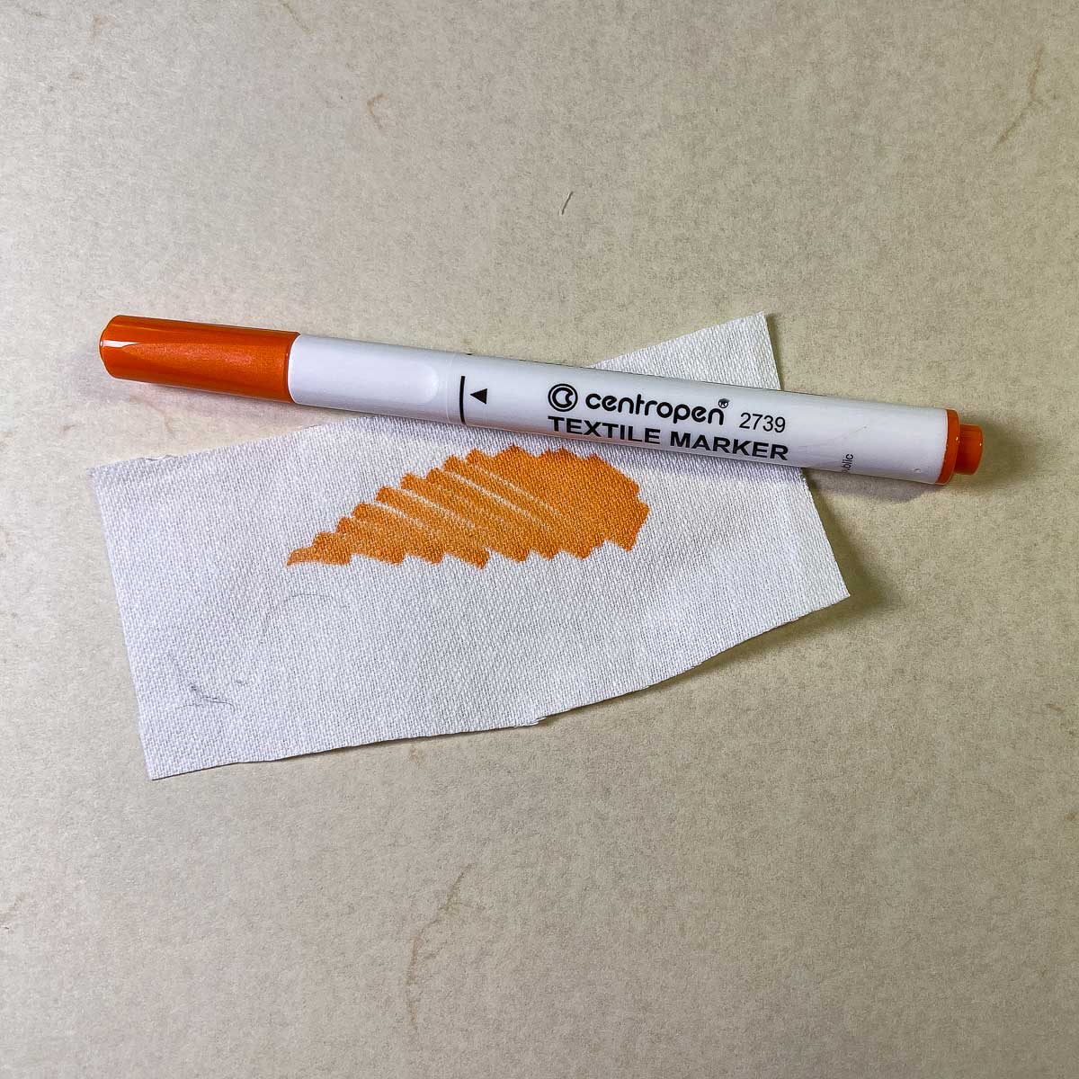 Oranžový fix na textil od značky Centropen. Nemusí se zažehlovat a má odolnost při praní do 60°C. Má hrot o průměru 3,9 mm, ale s jeho špičkou zvládnete i čáry mnohem tenčí.