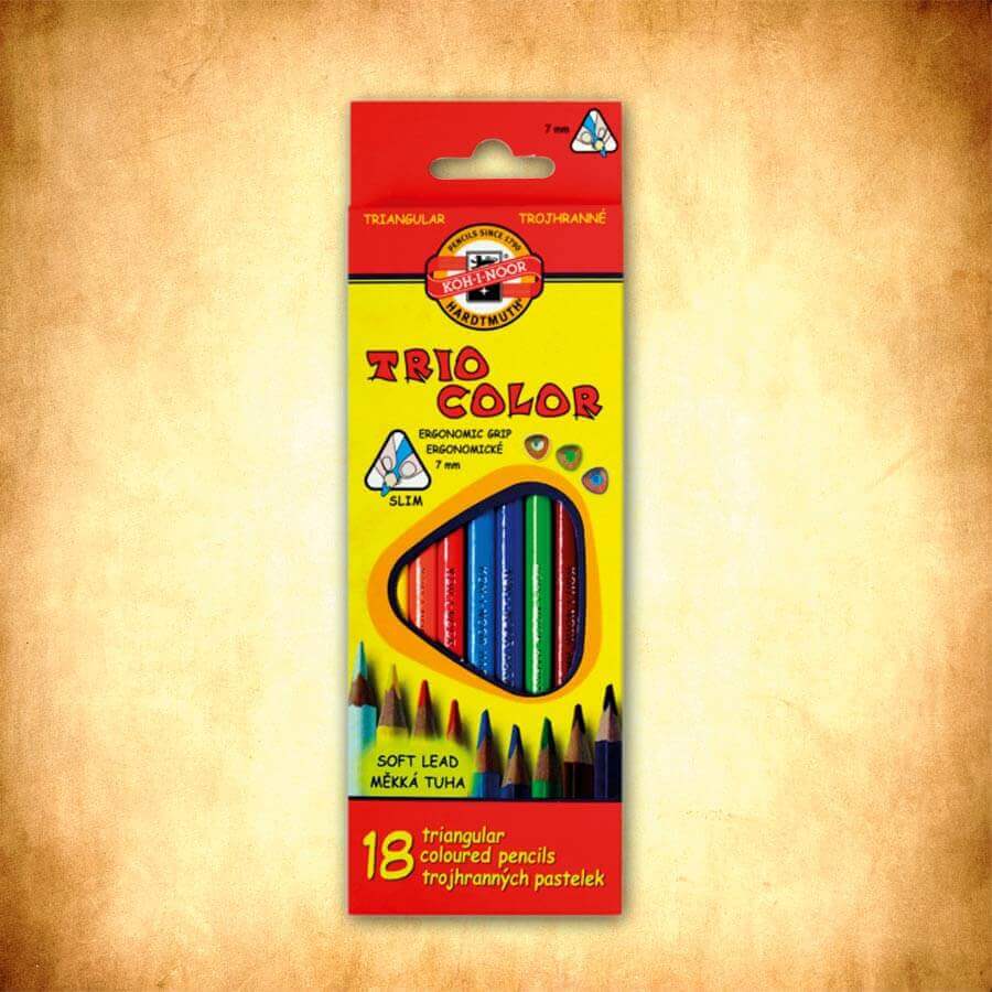 Sada 18 kusů kvalitních trojbokých pastelek v papírové krabičce, které se hodí například pro vymalovávání našich vymalovánek.