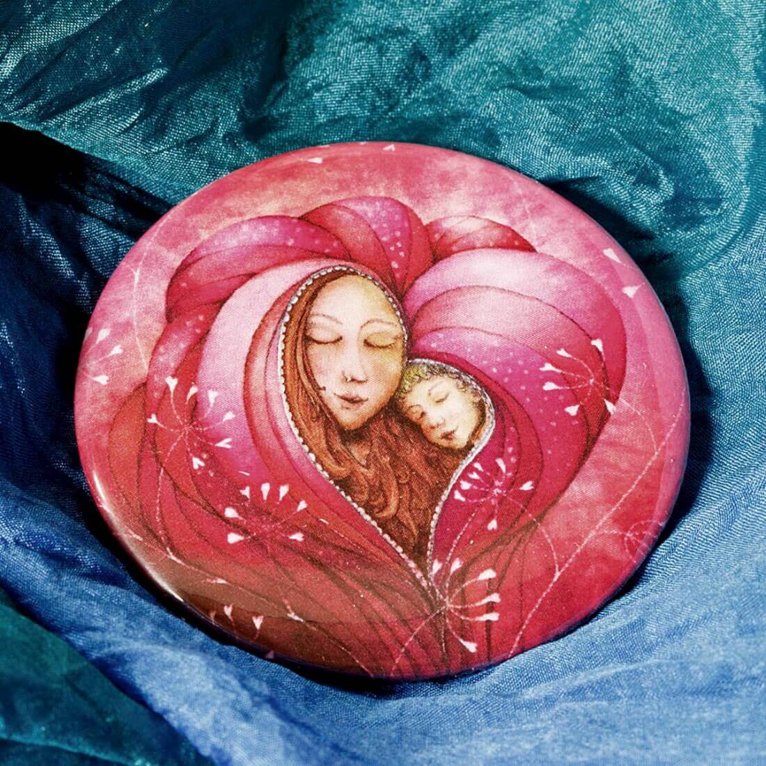Jednoduché kosmetické zrcátko do kabelky s autorským motivem z projektu inspiračních karet Cesta k sobě.
