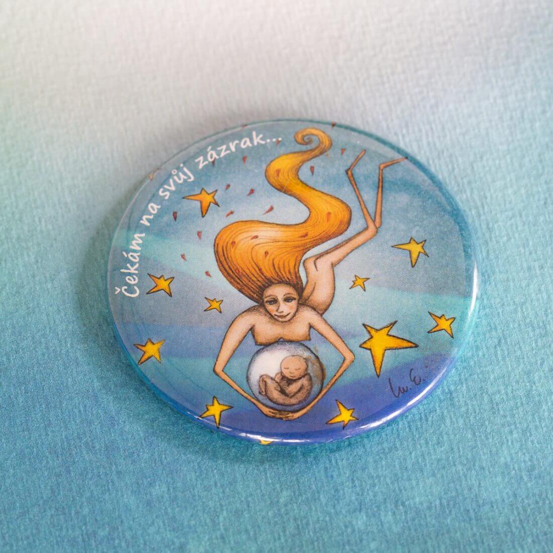 Jednoduché kosmetické zrcátko do kabelky s originálním autorským motivem, který je milým dárkem pro všechny nastávající i stávající maminky.