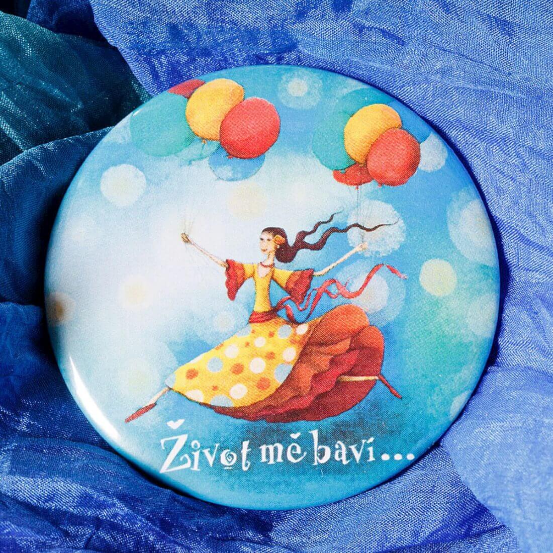 Originální jednoduché zrcátko o průměru 5,6 cm. Z jedné strany je autorský obrázek krytý odolnou fólií, z druhé strany je vsazené skleněné zrcátko.
