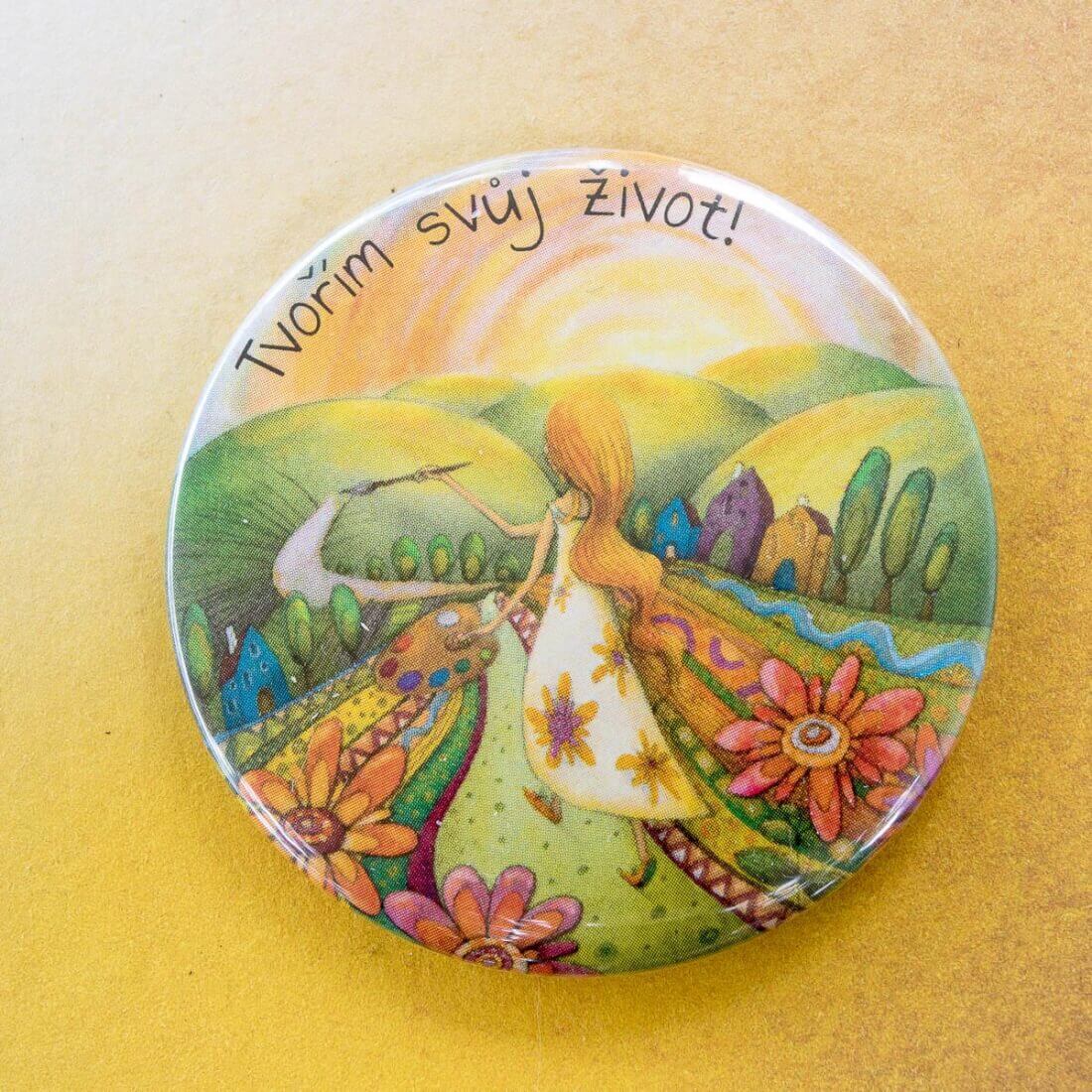 Jednoduché kosmetické zrcátko do kabelky s autorským motivem z projektu inspiračních karet Cesta životem.